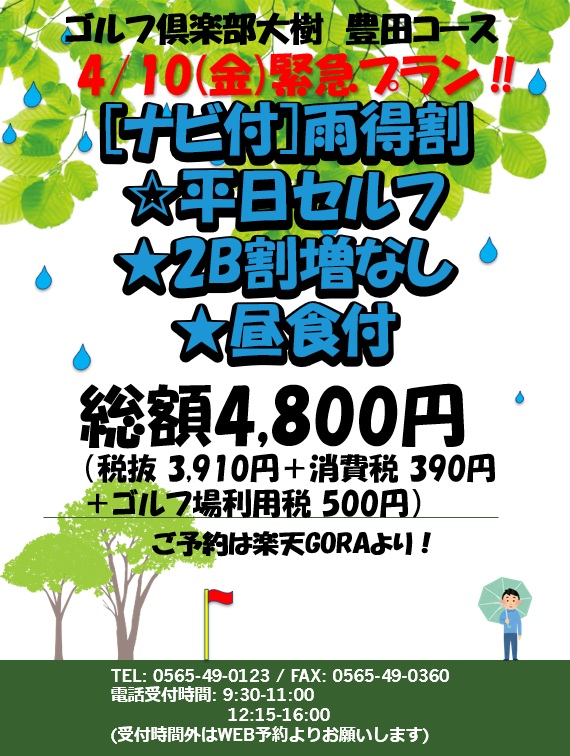 明日4/10は残念ながら雨予報ですが、ゴルフを楽しみたい‼